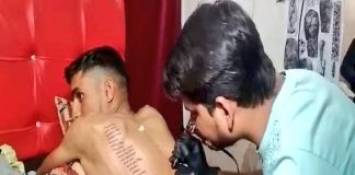 வீரமரணம் அடைந்த ராணுவ வீரர்களின் பெயர்களை உடல் முழுவதும் பச்சை குத்திக் கொண்ட வாலிபர்!