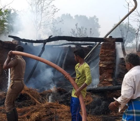 நாட்றம்பள்ளியில் மாட்டு கொட்டகை திடீரென தீ விபத்து