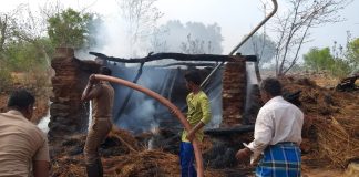 நாட்றம்பள்ளியில் மாட்டு கொட்டகை திடீரென தீ விபத்து